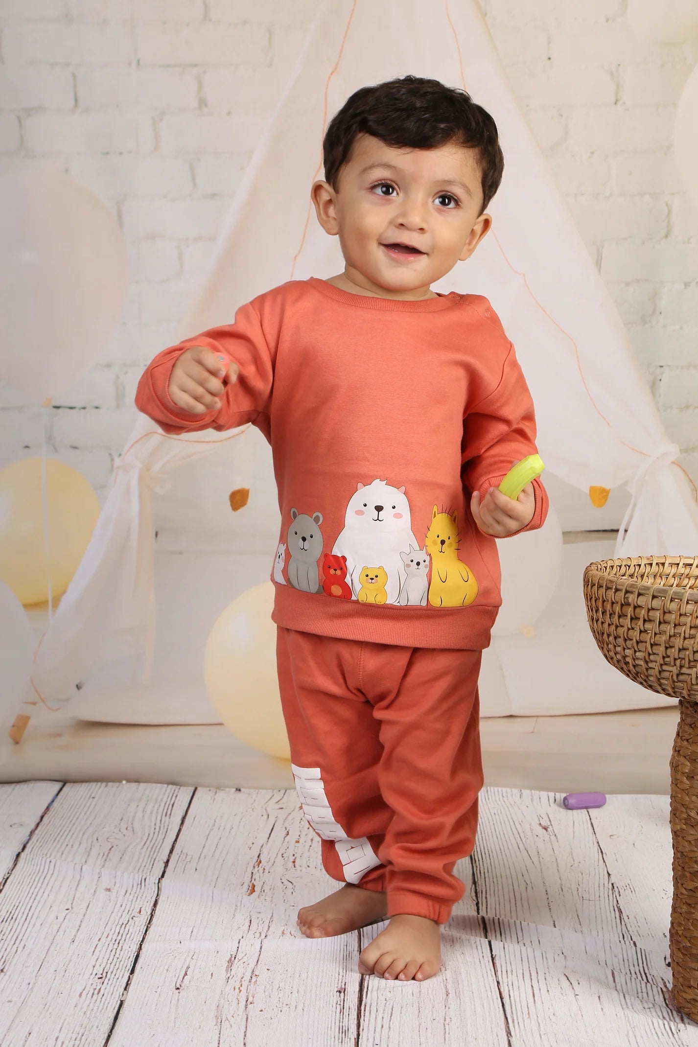 Dress your little one in the cozy and stylish Rusty Charm Baby Sweatshirt, perfect for cooler days and casual outings. Featuring a rich rust hue with a playful sticker print, ribbed detailing for a snug fit, and a press-stud on the shoulder for easy dressing, this sweatshirt combines functionality with charm.