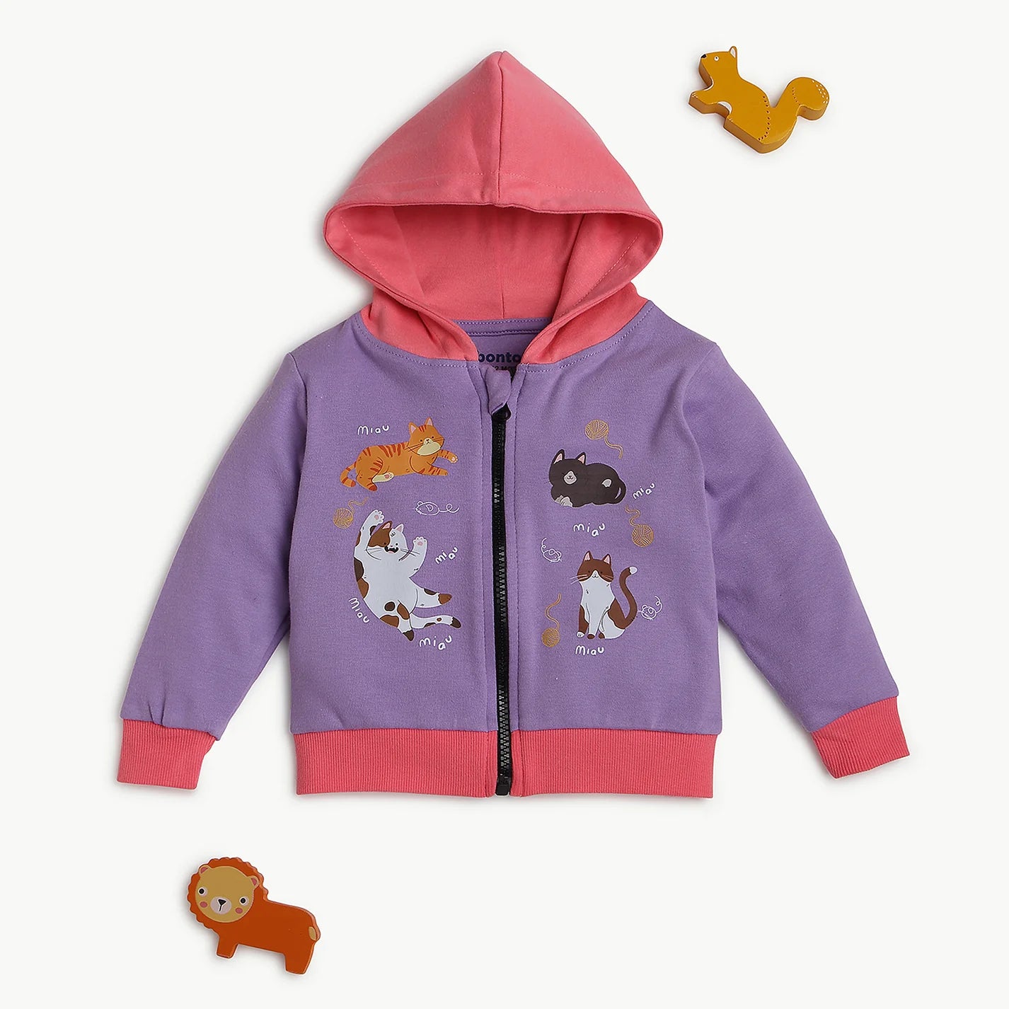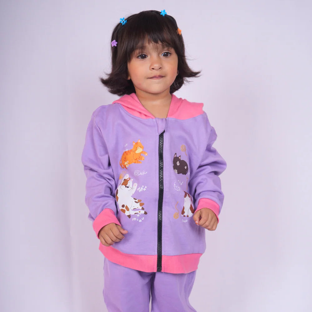 Add a touch of charm to your baby’s wardrobe with this Lavender & Candy Pink Hoodie. Designed for both comfort and style, this hoodie features a soft ribbed hem, a cozy hood, and playful sticker prints. The vibrant colors and easy-to-use zipper closure make it a practical and adorable layering option for cooler days.