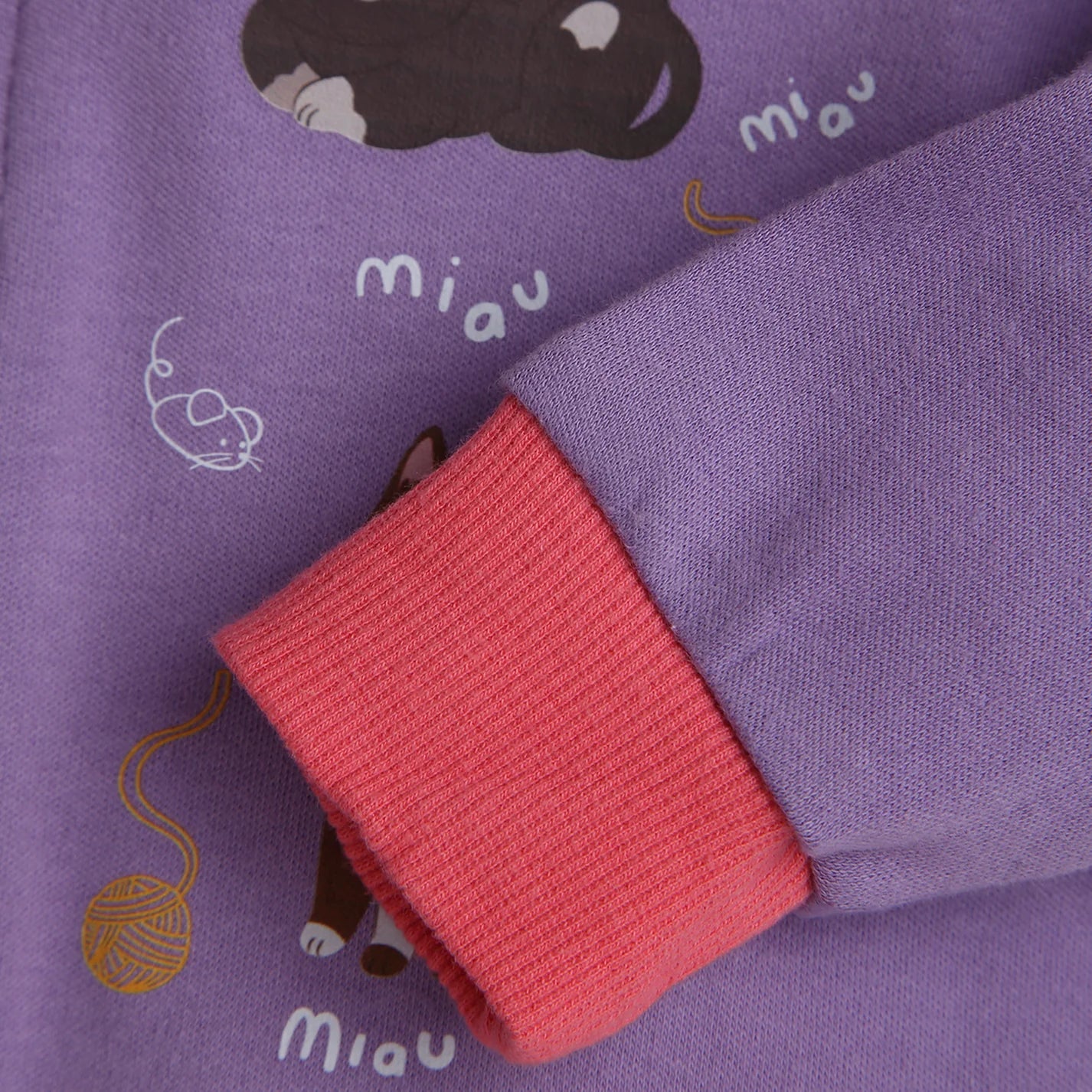 • Playful Sticker Print: Cheerful design in lavender and candy pink tones.