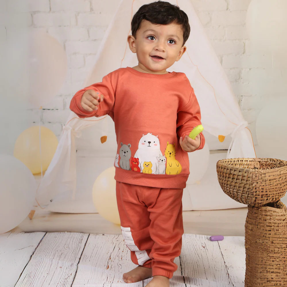 The Rusty Roam Baby Joggers are the perfect addition to your baby’s wardrobe. Designed with a charming rust color and playful sticker print, these joggers combine style and comfort effortlessly. The elastic waistband with a functional drawstring ensures a snug fit, while the soft fabric offers all-day coziness for active little ones.