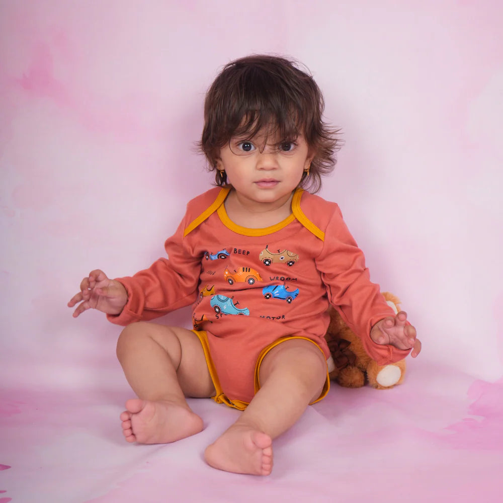 Dress your little one in comfort and timeless style with our Rust Mustard Full-Sleeve Infant Onesie. This cozy essential is designed for all-day wear with features that make life easier for parents and snuggly for babies.