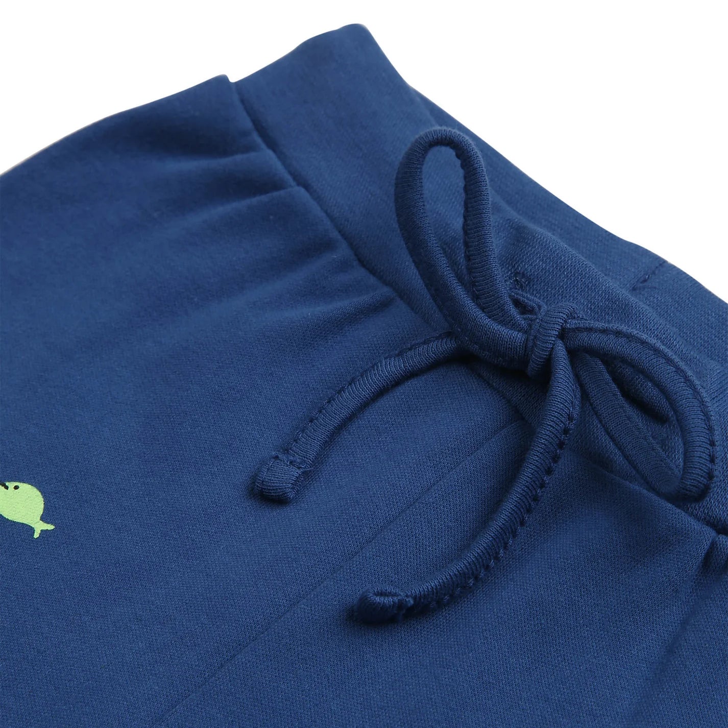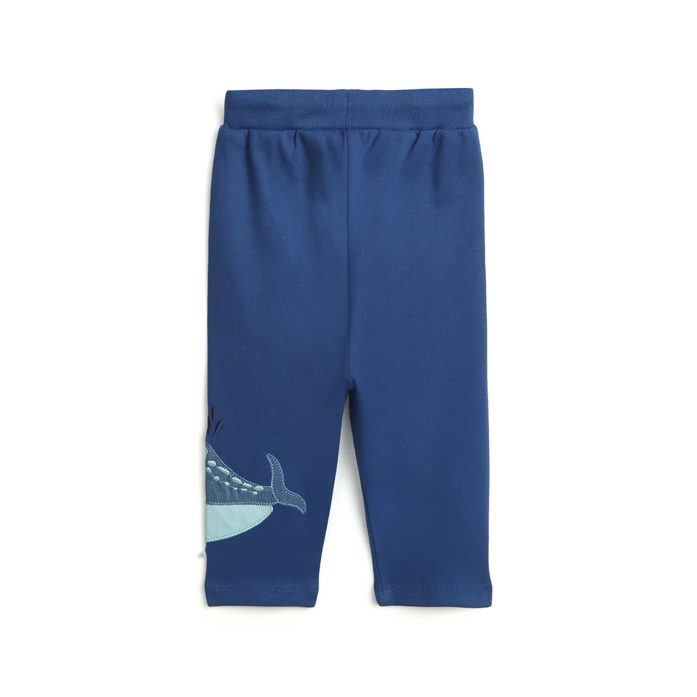 These adorable baby joggers feature a playful whale and fish print on a deep navy blue background, perfect for adding a fun ocean theme to your little one’s outfit. Made from soft, comfortable fabric, they provide all-day coziness. The elastic waistband with a drawstring ensures a snug, adjustable fit.